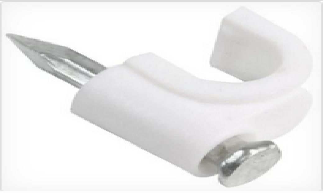 Bolsa de 20 grapas color blanco, ideal para diferentes tipos de cable, redondo, es de 32 mm de ancho, con clavo.