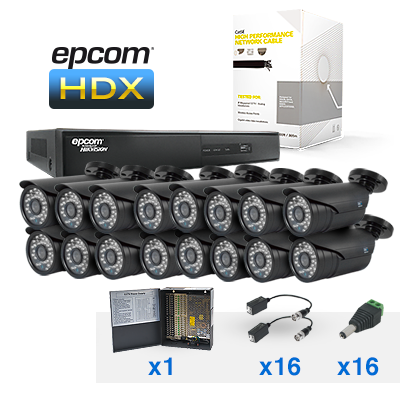 Sistema HDX con 16 HRB600XB, EV1016HDX, Cable Cat5e LPRO, Fuente de poder.