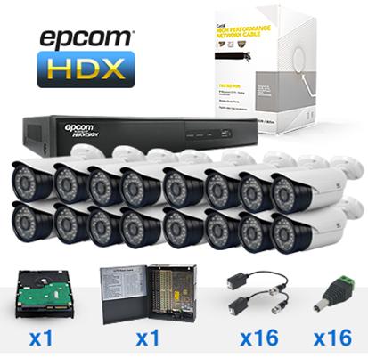 Sistema HDX con 16 HRB600XW, EV1016HDX, Cable Cat5e LPRO, Fuente de poder,Disco Duro