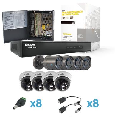 HDXHRBD800W/8SH Sistema HDX con 4 HRB800 y 4 HRD800W(800+TVL, dWDR, exterior,IR inteligente), EV1008HDX, 305 m cable Cat5e LinkedPRO, fuente de poder profesional, transceptores TITANIUM