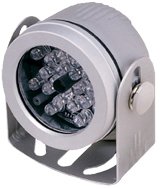 Iluminador Infrarrojo 10 Mts. Intemperie. Perfecta para convertir su camara normal a día noche * Foto celda de autoencendido * Para exterior (norma IP67) * Luz infrarroja 24 LEDs * Angulo de iluminación 70° * Alcance de luz de 10 mts * 850 nm de longitud de onda * Alimentación 12 VCD, 1 Amp. * Dimensiones: 55 (diámetro) x 37 (longitud) mm.