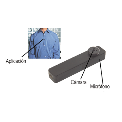 Camara Oculta en Boton de Camisa, Resolución de grabacion; 640 x 480 pix (AVI), Resolución en fotografía: 1280 x 1024 pix. (JPEG), Memoria 4 GB (interconstruida), Duración de la bateria 2 hr. Max.
