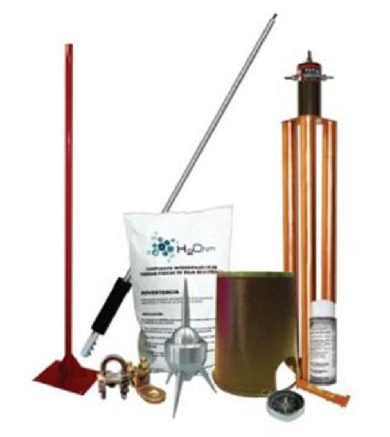 - KDALU (1 Pza.) Punta pararayos con mástil de 1.2 m (MASTIL1.2), electrodo de 100 A (TG100AB) un saco de 11 Kg de compuesto mejorador de suelo (H2OHM).