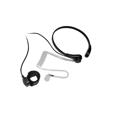 • Micrófono de garganta táctico de uso rudo con audífono acústico.