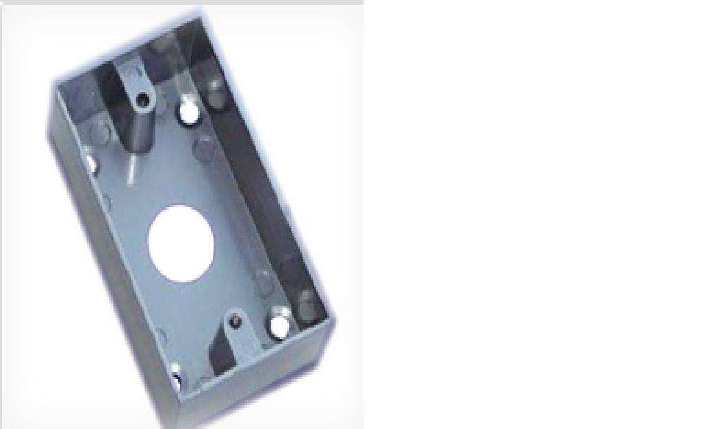 La caja protectora RB03B funciona con el boton RB03, esta caja nos dara utilidad para esconder los cables que lleguen al boton esten esteticamente instalados con su caja protectora para que no se rompan o corten.Tambien utilizada en cualquier tipo de instalacion para hacer mas facil el trabajo de poner el boton liberador RB03 teniendo una guia para su instalacion con la caja protectora.La instalacion de esta caja puede ser tanto dentro del muro como fuera de el, esto hace mas versatil el equipo para cualquier tipo de instalacion.