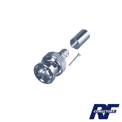 Conector BNC Macho para cable RG-59/U, RG-11/U. de 3 piezas de Pin soldado y anillo ponchado, 27 mm, anillo 13 mm.
