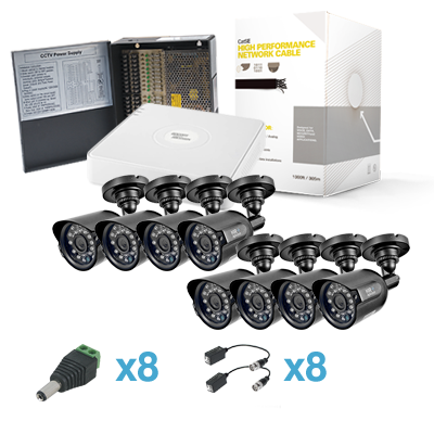 Sistema S Series 8 HRB700B(720TVL, IR, Exterior), S08, 305m Cable Cat5e LinkedPRO, Fuente de Poder Profesional, Transceptores TITANIUM