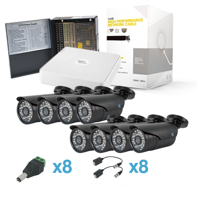 Sistema S Series 8 HRB700XB(720TVL, 36 IR, Exterior), S08, 305m Cable Cat5e LinkedPRO, Fuente de Poder Profesional, Transceptores TITANIUM.
