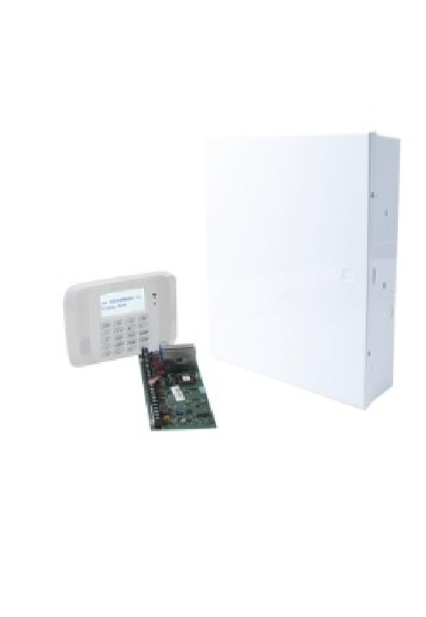 Sistema de Alarma de 8 Zonas con Teclado LCD Alfanumerico y Receptor Inalambrico para 40 Sensores.