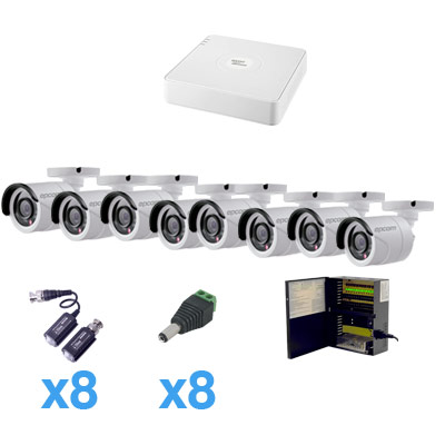 STURBOHRBW8 Sistema LEGEND TURBOHD 720P de 8 canales compatible con P2P incluye 8 HRB900W (Bullet interior/exterior 900TVLs 3.6mm color blanco), transceptores, adaptadores de voltaje y fuente de poder profesional