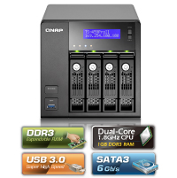 Hoy en día, las pequeñas, medianas y grandes empresas, así como los grupos de trabajo, tienen el reto de adaptarse al dramático incremento de los requerimientos del almacenamiento de datos digitales, que incluye documentos, correos electrónicos y aplicaciones. Para satisfacer las demandas de almacenamiento, así como las de otro tipo como la creación de copias de seguridad centralizada de red, intercambio de archivos en múltiples plataformas (Windows, Mac, Linux y UNIX), compartir impresoras, servicios de descarga FTP, e incluso la grabación de videos de vigilancia, QNAP ha creado la serie Empresarial de servidores Turbo NAS: el sueño de todo administrador de tecnologías de la información. Nunca antes un solo dispositivo de red había tenido tantas aplicaciones empresariales, incluyendo la solución más integral de IP-SAN como la línea de productos Turbo NAS de QNAP de servidores de NAS (dispositivos de almacenamiento conectados a red).El Turbo NAS de QNAP TS-459 Pro II es el dispositivo de almacenamiento conectado a red que realmente es de clase empresarial en la industria; está diseñado con tecnología de última generación como sus discos duros SATA III de 6GB/s que cuentan con tasas de transferencia de datos de gran velocidad. EL NAS alberga hasta cuatro unidades de discos duros SATA de 3,5 o 2,5 pulgadas para obtener capacidades de almacenamiento de red de hasta 12 TB (con unidades de 3 TB como referencia). El TS-459 Pro II incorpora un procesador Intel® Atom™ D525 de 1,8GHz y doble núcleo, tiene un rendimiento sumamente alto, es confiable y consume poca electricidad durante las intensas transferencias de datos. El TS-459 Pro II cuenta con un RAM DDRIII de 1Gb de alto rendimiento y se puede extender a 3GB añadiendo otro RAM de 2Gb en la ranura de la memoria RAM.